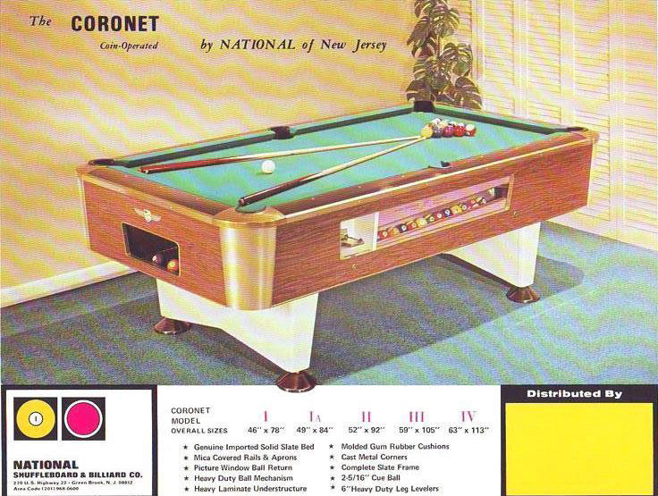 I don't have any other information besides this, but here is the catalog page for the National Coronet pool table: