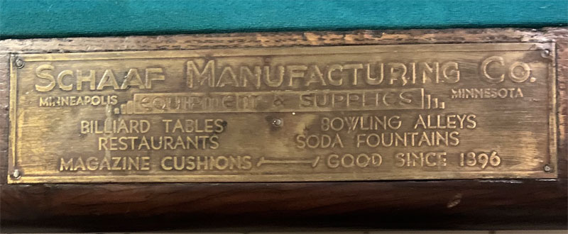 Note that Schaaf serviced pool tables, so many older pool tables with that name plate are actually other brands. It was common practice in the industry for companies with the pool table service contracts to replace original name plates with their own.