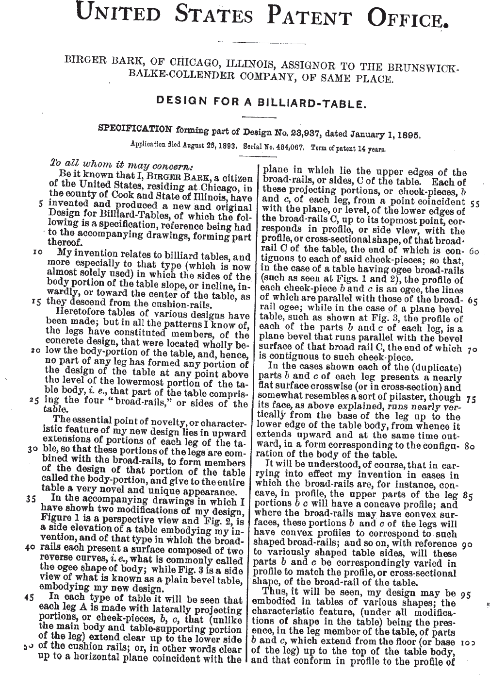 ...or you can download the PDF document of the brunswick billiard table patent 23937 here. The content is the same as in the images, but it is easier for printing, etc.