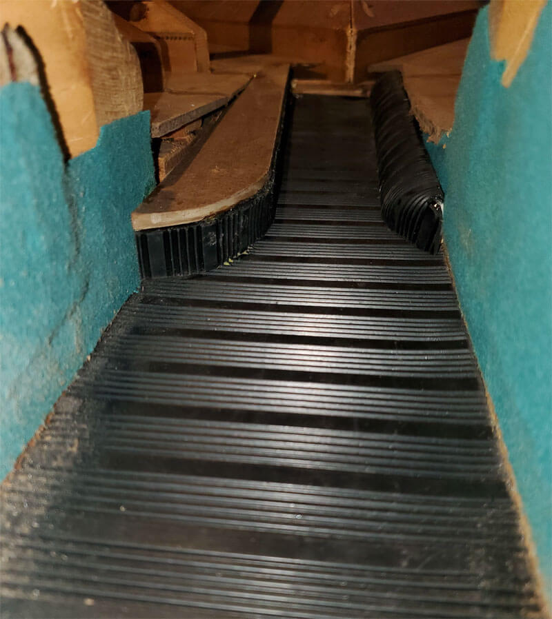 - I used the old felt from the table top to line the inside after placing down backer board on the runs to quiet everything down. I also used rubber mat, cut to size, for the return. This helps to quiet everything, to slow down the balls, and to help prevent any denting of the wooden parts that made contact with the balls.