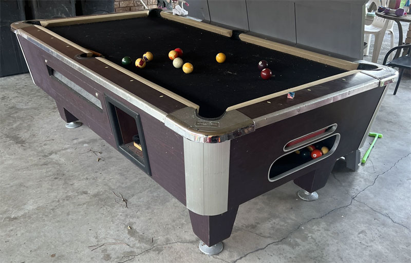 I just picked up this Cooper coin-operated pool table. It’s an older coin-op pool table which has been converted to free play.