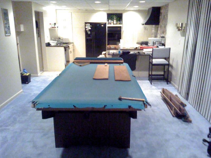 I still need to level the pool table, re-surface it, and cover the screw holes. We'll be getting through this as long as I have the time and money for it. It's my pool table, but I set it up at my friend's apartment. I'll most likely be moving in as soon as my current lease is up.