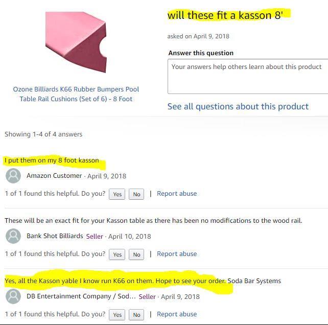 billiardsforum on 1/13/2021 4:46:13 AMI found three sources that say Kasson pool tables used a K-66 cushion profile: