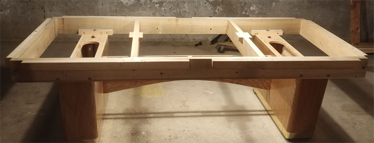 Bob hasn't gotten back to me, but I took some measurements. The rails are 1 5/8" thick, and the cushion base angle is 26º. I verified that with 3 different tools/methods, just because to be sure. For K66 it should be 20-23º, and K55 is 22-25º, so with either one the nose is too high. With the K55 cushions taped to the rails, table width is just under 50", and once the cushions are moved down into their proper place it will decrease more. So once I've verified that my Amazon cushions aren't longer then spec (quality cloth and cushions will come later), I think a pass across the table saw will fix the tongue, geometry, and size all at once. I've also posted this on azbilliards, I'm hoping the guys there will approve.
