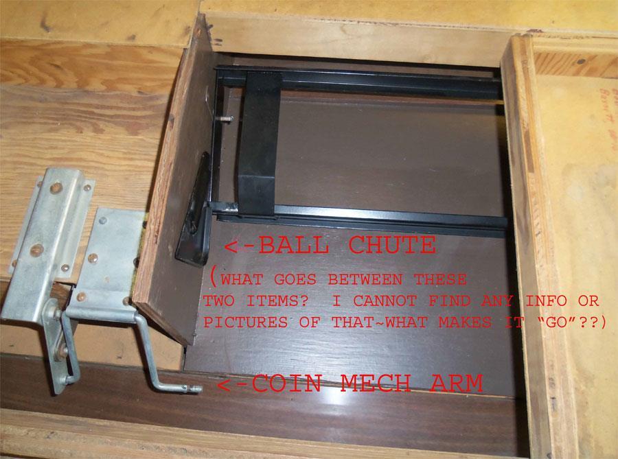 Someone had previously removed the coin slot and ball drop mechanism from the one I have, but I want to return it to it's original operating condition, just because.
