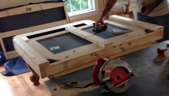 Here's a few photos of billiard service techs crating 3-piece slate for transport.