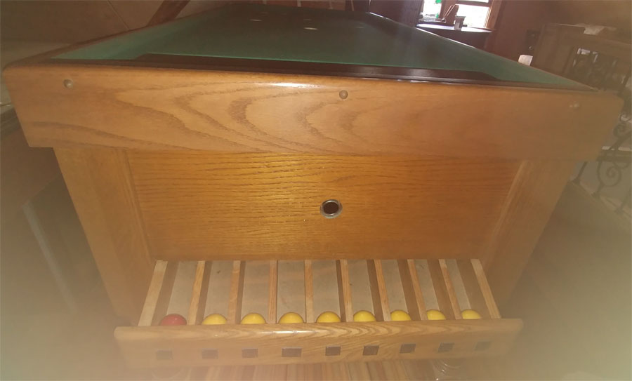 I have a British Bar Billiards table I want to sell. We're in Central Florida. Its old golden oak and works well. Skittle, balls (yellow/red), and scorer included. It has a working ball return area, shown in photos below.