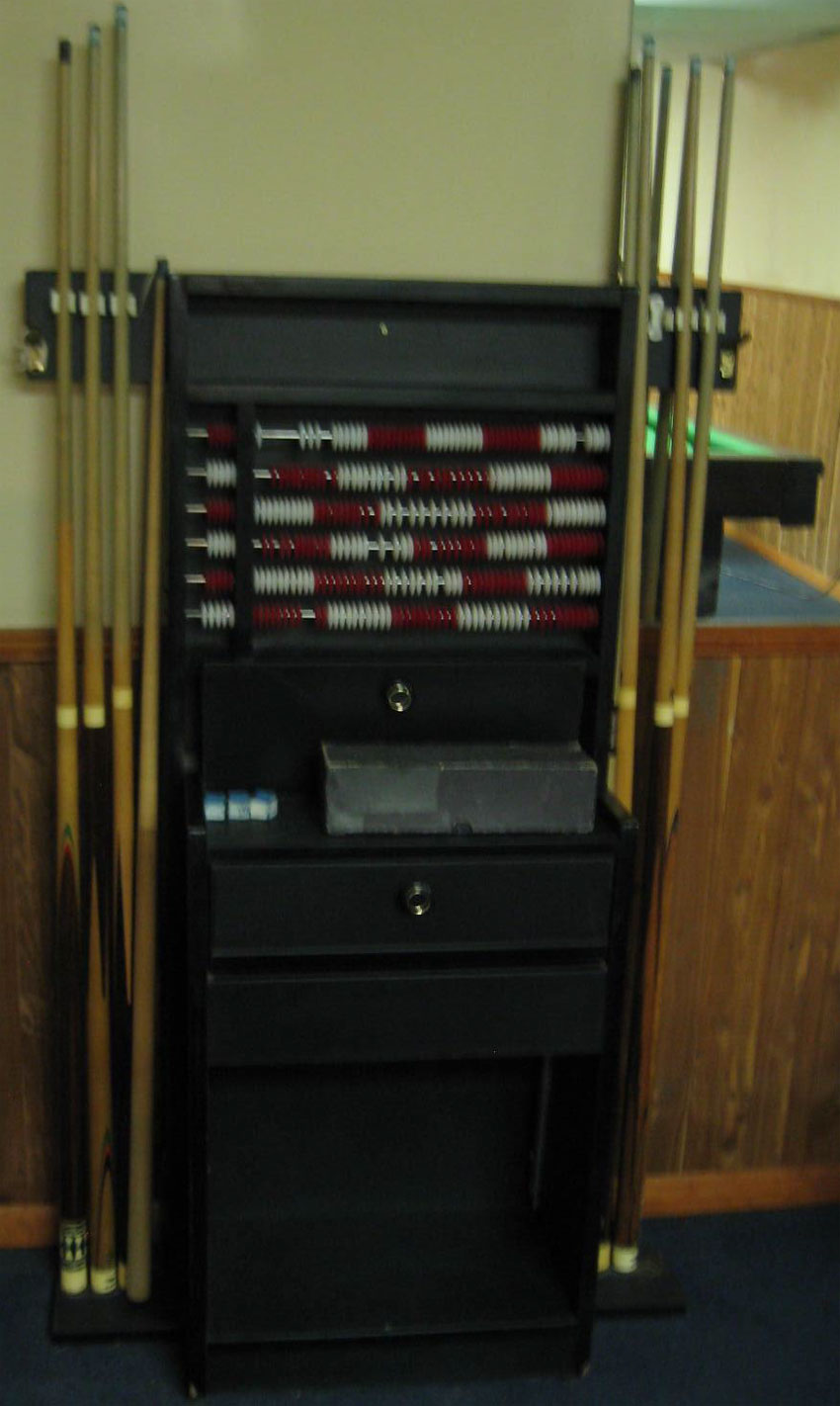 **Bonus with table: Cue stand rack with scoreboard, 8 cue sticks, 4 Aramath balls, 3 cue chalk cubes