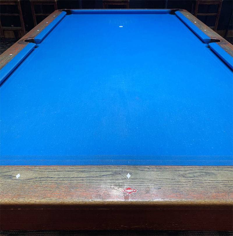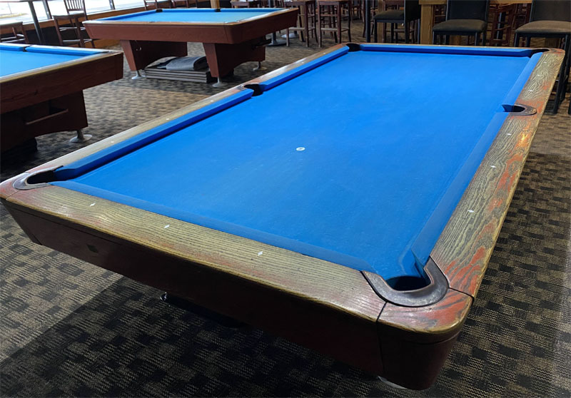 Competition blue cloth is available for refinishing. Brand new cues and chalk included with each table.