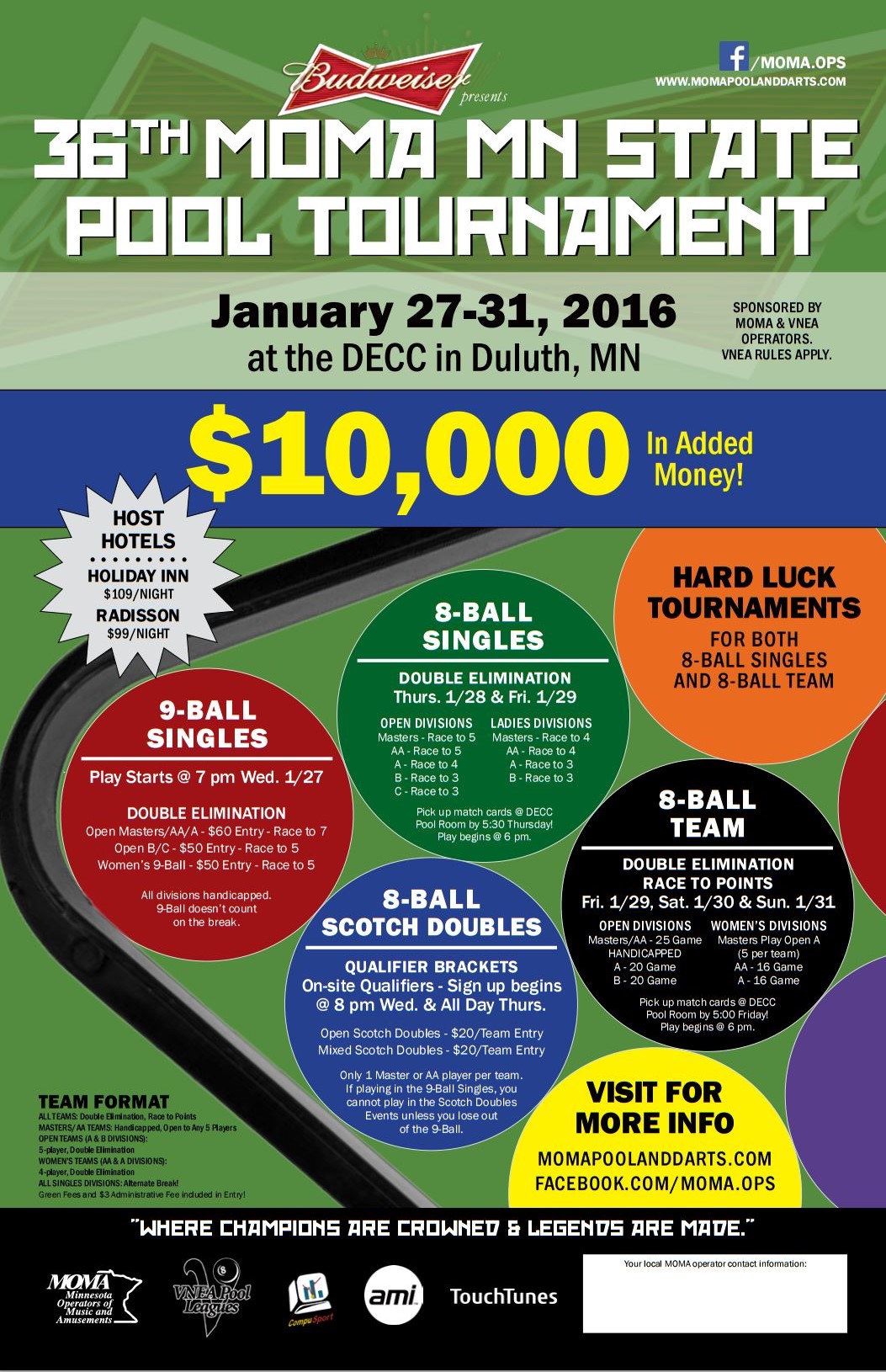 - Title: 36th MOMA State Pool Tournament in Duluth MN 2016